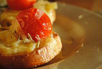 cover it with slices of Comté and some rosemary. Brown the tartinades in the oven for 5 minutes