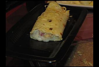 J'ai saupoudré du gruyère râpé sur les crêpes, et réchauffé le tout 15 mn à 180°.