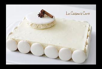 3. Pour le bavarois chocolat blanc : Commencer par une base crème anglaise en portant le lait à ébullition, dans une casserole préalablement humidifiée (pour éviter que le lait n'attache au fond de la casserole). Battre les jaunes d'œufs, puis y ajouter petit à petit en remuant le lait bouillant. Remettre le mélange à chauffer à feu doux en remuant sans cesse. Pour contrôler la cuisson, plonger une cuillère dedans, la crème doit napper la cuillère et non glisser dessus comme du lait. Faire ramollir 2 feuilles de gélatine dans une assiette d'eau froide, puis quand la crème anglaise est prête, ôter du feu et les ajouter en remuant bien. Plonger ensuite les carrés de chocolat dans la crème, les laisser fondre et bien remuer à nouveau. Laisser refroidir la crème au chocolat à température ambiante. Monter la crème liquide en chantilly bien ferme. Y incorporer enfin, délicatement, la crème au chocolat, et couler délicatement sur le gâteau.