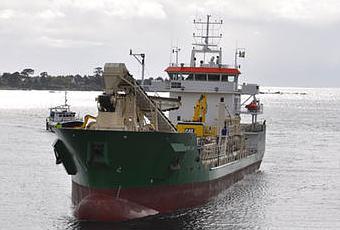 Sablier de 85m de la Compagnie Européenne de transports de l'Atlantique (CETRA), MICHEL DSR immatriculé à Saint-Nazaire. Construit en Pologne et achevé au chantier Piriou en 2009. (voir article sur Mer et Marine, le Télégramme).