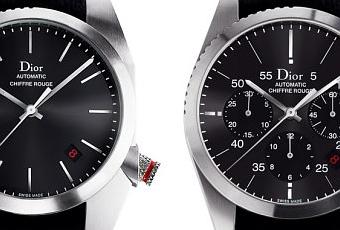 Dior suit les tendances et propose désormais des bracelets sangles nous rappelant l’iPod nano Watch Band pour les modèles A02 et A03 de sa célèbre collection Chiffre Rouge. Boîtier en acier, cadran noir brossé-soleil, étanche à 50m. Disponible en vert olive, kaki et noir. Prix : 2750 et 1550 €.