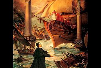 Il vit la mer, et là, rangés en bataille, des vaisseaux innombrables remplis d'armes de toutes sortes, livrant bataille à un grand et majestueux vaisseau représentant l'Église.