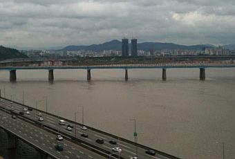 Le fleuve Hangang qui traverse Séoul de jour et de nuit. Des infrastructures ont été crées pour rendre ce cours d'eau plus agréable. Parcs, piscines en pleine air, chemins pour vélos et cours de tennis ont été aménagés tout le long du fleuve.