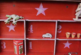 Intérieur peint en rouge « tomate », ornées de pochoirs