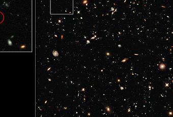 Repérée au préalable sur les derniers relevés « Hubble Ultra Deep Field » datant de 2009 du télescope spatial Hubble, la galaxie nommée UDFy-38135539 voit sa distance de 13,1 milliards d’années-lumière confirmée par une équipe d’astronomes.