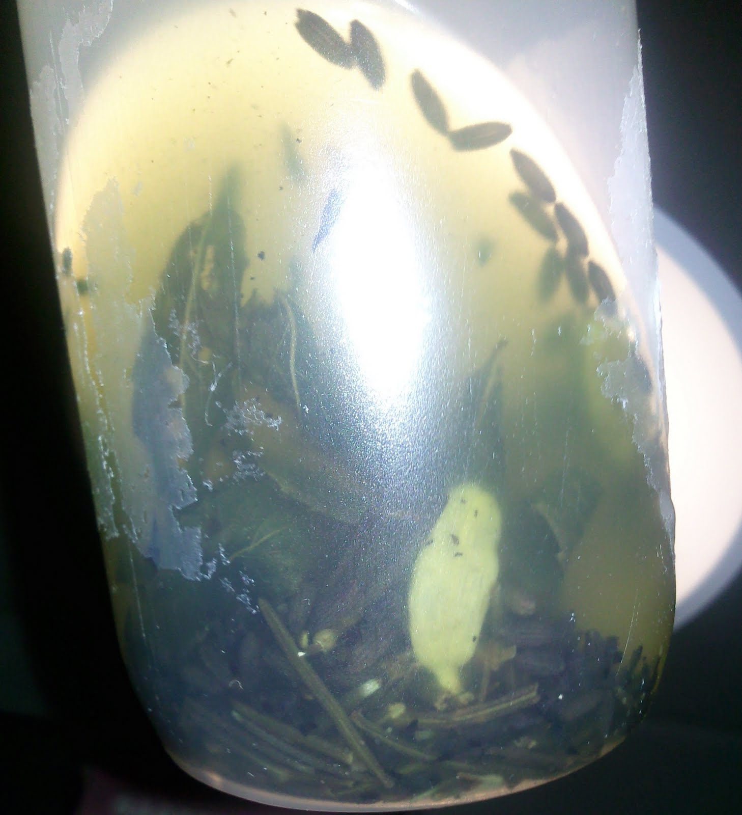 Au bout de 6 jours, j'ai rajouté 2 cuillères à thé de glycérine et 10 cl d'eau pure.