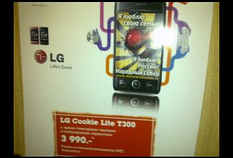Mais il y a aussi des publicités sauvages plus discrètes, plus incidieuses. Par exemple cette publicité pour les mouvements d’extrême droite Narodny Sobor. La publicité d’origine montre un téléphone LG fonctionnant sur le réseau de téléphonie MTS. Jusque là tout est normal. Seulement l’écran du téléphone est parasité par un autocollant épousant la forme de l’écran et reprenant le design général des publicité MTS avec un gros cœur. Seulement le slogan est devenu, j’aime ma famille, j’aime la Russie Narodny Sobor. Ce qui se traduit bien sûr par je hais les étrangers.