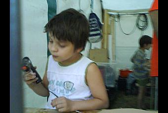Ci-dessus, n°3 lors d'un atelier électricité cet été lors du Festiv'été de Sevran. Ci-dessous, sa réalisation du jour, sans que personne ne lui ait jamais rien montré en couture et encore moins en patchwork !
