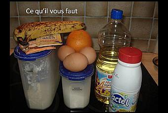 . Faire un puits et ajoutez l’huile, les œufs, le lait, puis les bananes en rondelles et le zeste d’orange.