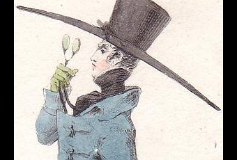 début du XIXe siècle les chapeaux masculins sont immenses (par exemple dans l'article Incroyables chapeaux) ; comme ils ne l'ont sans doute jamais