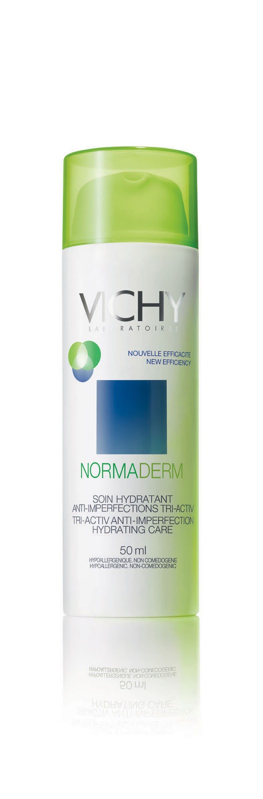 Normaderm, c'est l'actualité de la rentrée (même si on est en octobre, on est encore dans la période "rentrée".. si , si je vous jure !! ou presque..). Elle a été créée parce qu'on s'est rendue compte que près de 8% des femmes souffraient encore d'acné après la période de l'adolescence. Chez les dermatologues, on traite ces femmes grâce à la technique du peeling superficiel (c'est-à-dire un peeling sur l'épiderme). Aujourd'hui, a été transposée cette technique chez VICHY avec la crème TRI-ACTIV. Pour une triple efficacité (imperfections, brillance et pores obstrués), la crème Normaderm est composée notamment de silice et de perlite .