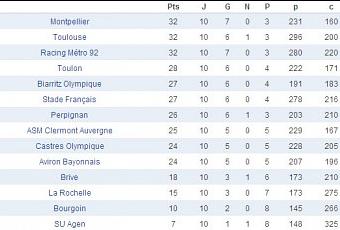 TOP 14 10ème Journée - Classement Saison 2010 – 2011