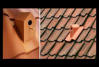 Un designer Hollandais, Klaas Kuiken, a eu l'ingénieuse idée d'intégrer des maisons pour oiseaux aux toitures. Le principe est simple et efficace, ces nichoirs fabriqués dans le même matériaux que les tuiles se posent tout simplement sur les toits, comme une tuile normale, et permettent ainsi aux occupants de bénéficier d'une vue imprenable et d'un espace de tranquillité sans pareil. Une façon originale de se fondre dans le paysage, de gagner de la place car plus besoin de réquisitioner des troncs d'arbres mais aussi de parer aux éventuelles tuiles cassées ! Pour le bien être de la faune sauvage...