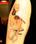 Allez un tatouage en rapport avec l'actualité pour une fois ! Vu que les premières images et même la première vidéo (ici) de Street Fighter IV ont été dévoilé il y a pas longtemps, voici un tatouage de Ryu réalisant un "Shoryuuuuuuuken".