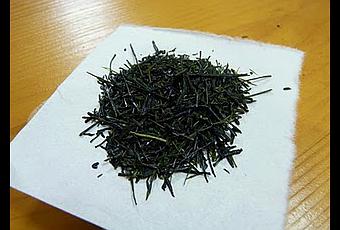 Il n'est pas rare avec ce type de produit de voir à l'ouverture du sachet des feuilles comme recouvertes d'une poudre blanche. Cela n'est pas le signe d'une altération de la qualité du thé, mais seulement, la longue conservation sous vide en fera littéralement ressortir la caféine, qui apparaît blanche à la surface des feuilles. Ici, il n'en est rien. De splendides feuilles au vert profond et brillant. Néanmoins, signe de la maturation peut être, ce vert apparaît de manière très franche à la différence des gyokuro frais dont le vert tend vers le bleu de Prusse.