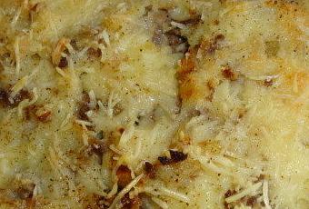 Parsemez légérement de parmesan rapé.Enfournez et faites cuire environ 15 mn, jusqu,a ce que le hachis soit doré.