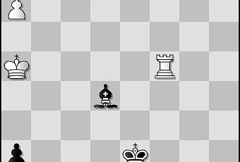 A l'évidence, la finale serait irrémédiablement gâchée si les Blancs précipitaient leur dernier Pion sur sa case de promotion. Il suffirait que les Noirs répondent à l'identique pour s'emparer de l'infortunée compagne du Roi blanc, une fois ce dernier délogé de la colonne "a". Cette première observation a de quoi ruiner tout espoir ! Mais où est donc le traquenard qui force le partage du point ? 1.Fb2 !! En voilà un qui porte bien son nom ! 1. ...Fxb2 Les Noirs ne se font pas prier, d'autant qu'ils n'ont pas d'alternative valable !
