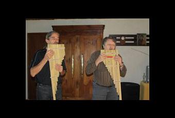 Repas sur les tréteaux avec le beau temps, et comme habituellement, chacun avait tenu à démontrer ses talents de « chef cuisinier » et la table se couvrait tour à tour de cakes au jambon, de salades variées, de quiches, de pizzas, de gâteaux tous faits maison, de spécialités régionales et de mets les plus divers. Encore bravo à tout le monde, mais plus dure fut la reprise, vers 15 h 30, et à part une ou deux pauses, nous allions devoir « résister » jusqu’à plus de 20 heures. Au menu, si j’ose encore parler ainsi sans risquer l’indigestion, Julio proposait deux morceaux en l’honneur de nos amis grenoblois : « Amaneceres Fiesta de Italaque » Italaque comme son nom l’indique, et « Aima » un morceau plus cérémoniels aux influences musicales religieuses post-conquête. Et à la demande générale, un petit San Miguel, avant de passer à table, pour conclure cette première journée !