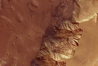 Lors d’un survol en 2006, la sonde spatiale européenne Mars Express a photographiée en très haute résolution une partie de la région appelée Melas Chasma.