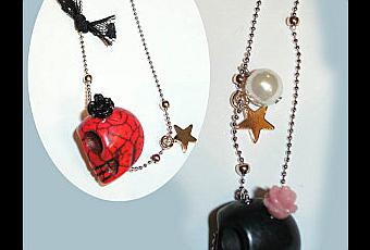 En ce moment, une petite série « Skull » déclinée en turquoise, rouge et noire, en sautoirs et en bracelets.