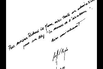 Photographie 1 : Dédicace de Raffel Pages de son livre/catalogue du musée de la coiffure lui appartenant.