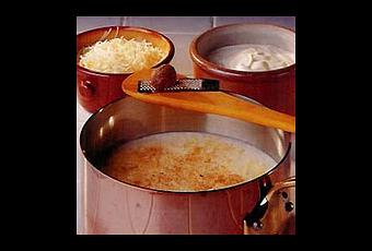 - Lorsque la sauce a épaissi, ajouter la crème fraîche et le gruyère râpé. Ajouter alors une pointe de noix de muscade. Mélanger. Servir cette sauce avec des gratins de légumes ou des épinards aux oeufs durs.