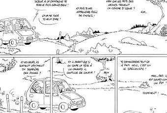 Après deux jours de bataille acharnée, je vous livre en primeur le premier gag du projet que l'on va tenter de faire éditer, avec Thomas Priou et Ypyb. Cette première planche n'en dit pas encore trop long sur le thème de la série mais elle donne un petit aperçu du style. Vous me direz ce que vous en pensez !