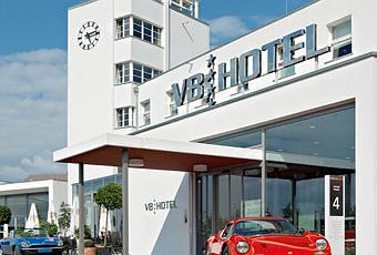 Installé au cœur d’un ancien aéroport (datant de 1928) dans le style « bauhaus » des années 20, le V8 Hotel s’inscrit dans la lignée des hôtels insolites. Amateurs d’anciennes belles voitures ? Cet hôtel est fait pour vous !