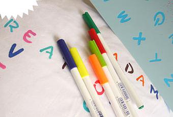 Matières : housse de coussin en 100% coton blanchi 40cm * 40cm, lavable en machine. Feutres spécifiques (normes CE) adaptés au travail sur textile.