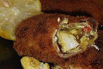 entre temps faite chauffer de l'huile dans une poêle, passer la crêpe dans l'oeuf , ensuite dans la chapelure et a petits feu faire frire.