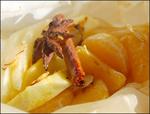- Disposez les sur deux feuilles de papier sulfurisée pour une papillote et déposez le sirop dessus avec une étoile de badiane et un bâton de cannelle. Refermez la papillote et cuire 20 minutes.