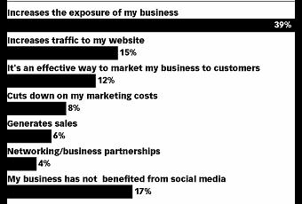 Une étude intéressante d'American Express OPEN mise en évidence par eMarketer cette semaine montre que les PME aux États-Unis considèrent réellement que les médias sociaux augmente la visibilité de leurs affaires. L'utilisation des médias sociaux a fait des progrès ainsi:"Bien que seulement un sur 10 dirigeants d'entreprises ont déclaré utiliser les réseaux sociaux pour le marketing l'an dernier, 39% ont indiqué qu'ils l'ont fait en Septembre 2010" - eMarketerFacebook semble mener le bal avec 27% d'utilisation, 9% LinkedIn, Twitter 8% et blogs 5% sont loin derrière. Mais la résistance est encore très présente pour les PME, plus de trois sur cinq ont déclaré ne pas utiliser les médias sociaux du tout, et la raison principale qu'ils ont donné était que cela ne s'appliquait pas à leur secteur d'activité.