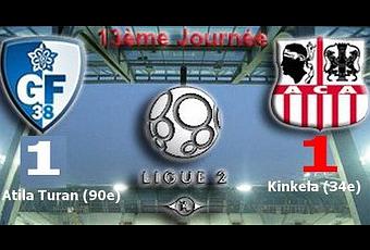 Ajaccio a vécu ce soir chez la lanterne rouge Grenobloise le même sort qu'à Evian voici quelques semaines... Alors que les Corses menaient depuis la demie heure de jeu grâce à un but de Kinkela, les Isérois sont revenus au score à la dernière minute avec un but de Atila Turan. Avec cette victoire que les Ajacciens tenait, ils auraient pu se retrouver 7e, mais avec ce match nul, les voilà scotchés à la 10e place. Grenoble occupe toujours l'ultime place de L2. Décidément les Ours n'arrivent pas à tenir un résultat à l'extérieur. Les regrets doivent animer les joueurs et le staff des Rouges et Blancs ce soir.