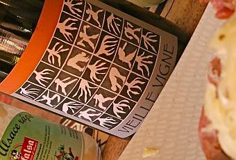 Deuxième service, riesling tout bu: Dolmen 2006, Domaine Julien Meyer, Nothalten. Un vin de pierres, forcément, un pinot blanc minéral né des épousailles entre "le sel de la terre et le fruit de la vigne". 3 ou 4 menhirs recouverts d'une grosse dalle plate, un point d'intersection entre l'Alsace et la Bretagne. Patrick Meyer n'est pas un sorcier ni un magicien, mais c'est un druide alchimiste, qui tire la quintessence de ses sols, faisant parler ses terroirs sans les assommer à grands coups de traités d'œnologie moderne. Et ce vin, minéral en diable, exprime une salinité décoiffante, comme si la pointe du Raz de marée avait submergé la plaine alsacienne du côté de Nothalten. Seul inconvénient, avec la choucroute déjà confortablement salée, ce vin donne soif! À vrai dire, un désagrément qui n'en est pas un.