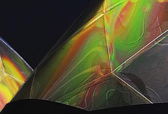 le prix de la lampe de la semaine revient à Elinor Portnoy et son luminaire complexe. Les éléments de la série Polar Lights explorent le potentiel visuel de la polarisation, propriété du a la vectorisation des ondes lumineuses. Des feuilles de matériaux polarisants inséré dans des feuilles d’acétates donnent à ces lampes un aspect tantôt ultracontemporain, ou l’aspect rétro des lampes Tiffany du début du 20e siècle.