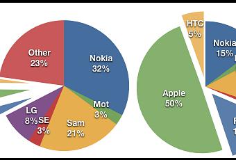 Certains chiffres sont très révélateurs et incroyables. Ceux mis en avant par Asymco font froid dans le dos : Apple représente 4% des ventes mondiales de mobiles mais 50% des revenus, il faut donc en conclure que tous les autres constructeurs ( 96% ) se partagent la deuxième moitié du gâteau ( 50% ).