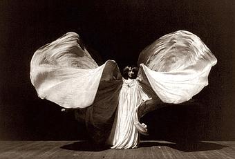 Inspiration— Des dizaines de mètres de tissu pour apparaître tantôt en fleur, tantôt en papillon, tantôt en méduse abyssale. La comédienne et danseuse Loie Fuller subjuguera les foules pendant des années avec sa chorégraphie bien singulière. Au détour du web, cette nuit, j’ai mis la main sur cette Danse serpentine, une vidéo, source d’inspirations à partager absolument.