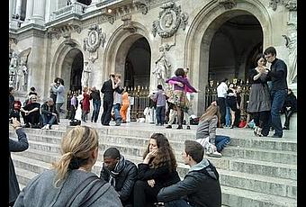 Se déguiser et aller à une party branchée pour être au courant des derniers potins. Passer alors pour un guignol dans la rue ou dans le Métro... Pas trop notre style !Sinon aller danser devant l’Opéra cet après-midi! Chacun à sa sauce, à son rythme et avec ou sans son partenaire. Tous les curieux rassemblés devant cette dame de la culture parisienne admiraient ces couples qui valsaient sur une musique à peine audible. Je me suis demandée pourquoi tout ce monde dansaient…mais je n’ai pas eu de réponse. Le plus important étant de se divertir, se changer les idées au pas de danse et profiter encore de ce temps doux qui couvre Paris. Nous avons gentiment admiré tous ces gens heureux de passer un bon moment en compagnie d’inconnus…et ça nous a re-donné le sourire après l’avoir perdu quelques minutes avant !Notre désir était aller voir Very Bad Cops. Malheureusement la séance était complète. Alors pour combler cette soirée exceptionnelle nous avons décidé de rentrer à la maison et de faire un gâteau au chocolat ! Pourquoi ce choix ? Car mon ronchonneur de service avait répondu à la question: - Qu’aimes-tu dans la vie ? - Le cinéma et le chocolat!Comme je ne pouvais pas commander une séance privée du film, j’ai pris la liberté de m’inspirer de son deuxième choix.Et comme Marmiton n’est jamais en grève, j’ai cherché les recettes disponibles avec les mots clé gâteau et chocolat. En mélangeant plusieurs choix, j’ai fait un gâteau au chocolat et aux poires.