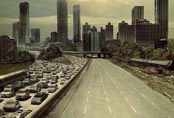 Si, sur le fond, The Walking Dead laisse entrevoir des choses très intéressantes, la série trouve une légitimité et une force supplémentaires dans les soins apportés à sa forme. J'ai déjà mentionné l'effort réalisé pour recréer cette population de zombies, mais c'est tout le décor post-apocalyptique de la série qui bénéficie du même savoir-faire. Si le final de l'entrée dans Atlanta est probablement le plus imposant en terme de reconstitution, il faut vraiment saluer le soin constant des détails, parfois à un niveau très modeste, dont la série fait preuve. De plus, la réalisation très appliquée dévoile une esthétique vraiment travaillée. La photographie est un peu éteinte, investissant des couleurs froides, reflet parfait de l'ambiance pessimiste mise en scène. Enfin, une utilisation réfléchie est faite de la musique. Donnant la priorité à une sobriété de circonstances, c'est un moyen de souligner d'autant plus la portée des scènes marquantes où une bande-son va retentir.