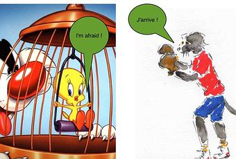 Ne t'en fais pas Titi, j'ai mis ma tenue de boxeuse pour voler à ton secours ! Mais en as-tu vraiment besoin ? Il est tellement stupide Sylvestre ce Gros Minet qui demande au père Noël le "yellow little birdie" qu'il n'est pas capable d'attraper. Pas plus d'ailleurs qu'il ne croquera Speedy Gonzalès, la souris, Slowpoke Rodriguez son cousin ni Pedro et Rodriguo les ivrognes.(Ne t'en fais pas Titi, j'ai mis ma tenue de boxeuse pour voler à ton secours ! Mais en as-tu vraiment besoin ? Il est tellement stupide Sylvestre ce Gros Minet qui demande au père Noël le "yellow little birdie" qu'il n'est pas capable d'attraper. Pas plus d'ailleurs qu'il ne croquera Speedy Gonzalès, la souris, Slowpoke Rodriguez son cousin ni Pedro et Rodriguo les ivrognes.( ) Dès 1942 Titi était un oisillon rose prénommé Orson et Sylvestre, à partir de 1945 un chat affamé. C'est Fritz Freleng qui a réalisé en 1947 le premier dessin animé de Titi : "Tweety Pie" (tweety signifie gazouillement en anglais et est devenu "Titi") avec à la clef un 1er Oscar suivi d'un 2ème en 1957. Différentes émissions très populaires sont venues ensuite.http://www.youtube.com/watch?v=hbEbOdppJXY&feature;=related) Dès 1942 Titi était un oisillon rose prénommé Orson et Sylvestre, à partir de 1945 un chat affamé. C'est Fritz Freleng qui a réalisé en 1947 le premier dessin animé de Titi : "Tweety Pie" (tweety signifie gazouillement en anglais et est devenu "Titi") avec à la clef un 1er Oscar suivi d'un 2ème en 1957. Différentes émissions très populaires sont venues ensuite.