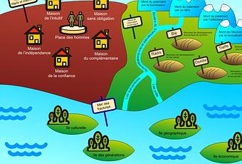 Cette cartographie utilise les travaux récents en sciences cognitives, histoire et anthropologie pour permettre de dépasser nos limitations et penser de façon innovante (voir la "pensée 2" pour développer de nouveaux modes de pensée.)