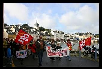 Photo : manifestation contre la réforme des retraites de 28 octobre. Environ 200 participants, encadrés par deux gendarmes, « du jamais vu de mémoire de Bellilois » raconte Bruno Fischer, qui nous a envoyé ce cliché.