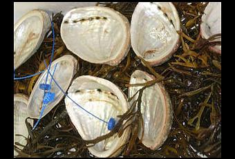 Toujours sous le chapiteau des démonstrations culinaires orchestrées par la Cavavin, le restaurant la Coquille s itué sur le port de Concarneau proposait dimanche à l'heure du goûter, devant un public très en verve, une déclinaison d'ormeau. L'Haliothis tuberculata mollusque à la belle coquille nacrée sur sa face interne est notre ormeau européen, appelé aussi "oreille de mer". Ce gastéropode se nourrit d'algues et évolue en eau peu profonde dans les zones froides à tempérées; sa pêche est stictement règlementée en matière de saison, taille et quota. De nombreuses espèces d'Haliothis que l'on différencie par leurs couleurs sont également exploitées sous l'appellation commerciale Abalone qui est le nom anglais de l'ormeau. L'aquaculture produit la grande majorité des abalones consommées principalement en Asie, on les trouve conditionnés en conserve ou sous vide. La Bretagne développe une production avec des "halioticulteurs" comme Groix Haliotis ou France Haliotis.