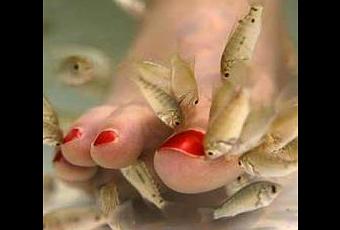 Je vous rassure, je n'ai pas fait le remake de Pirahna 3D! Il s'agit juste de mettre ses pieds dans un aquarium et de laisser des petits poissons grignoter les peaux mortes des pieds.