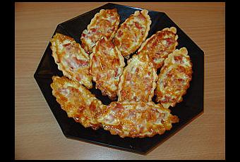 Coupez le jambon et dispatchez le ainsi que les lardons dans les moule.