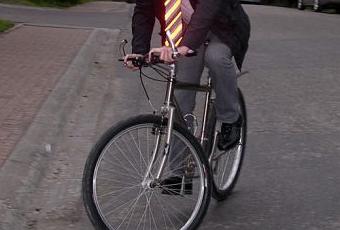 Pour tous ceux qui délaissent les transports en commun, abandonnent leur voiture et utilisent régulièrement le vélo, cette cravate est faite pour vous. A défaut d'être branchée et tendance, cette cravate est à classer dans la rubrique "cravate fantaisie" mais peut aussi s'avérer utile dans les nombreux embouteillages urbains. En effet, la matière utilisée à l'élaboration de cette cravate est la même que nos célèbres gilets fluorescents. Des réflecteurs sont placés à plusieurs endroits de la cravate permettant ainsi d'être vu (et surtout reconnu) par les automobilistes. Grâce à ce procéder il devient alors inutile de dénouer sa cravate à la sortie du bureau (ou presque....)