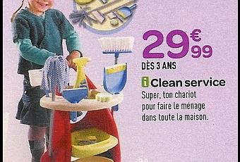 Et on tourne les pages. Pour les garçons : des voitures, des tractopelles, des grues, des trains, des hélicoptères et le quad de SpiderMan... Bref que des objets qui, dans la réalité, n'ont pas leur place à l'intérieur d'une maison. Chez les filles maintenant. Des poupées, des bébés à soigner, des petits animaux (rien à voir avec les dragons et les rhinocéros), des robes de princesses, des poussettes, des landaus, et finalement, la page qu'on préfère : les jouets Smoby. La caisse-enregistreuse, la cuisine, le chariot, le lave-vaisselle et la nouveauté de l'année... le clean service.