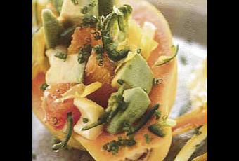 - Couper les papayes en 2. Enlever leurs graines et garnir chaque moitié de la salade d'avocat.