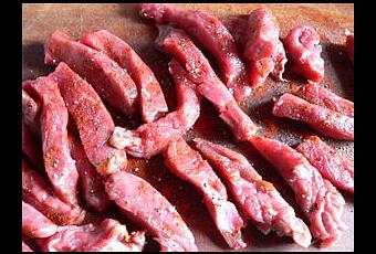 Choisir un morceau de boeuf tendre, comme du rumptseak, de l'entrecôte ou du faux-filet. Une tranche épaisse par personne ou un peu moins, que vous dégraissez au maximum puis taillez en grosses frites. Saler, poivrer et saupoudrer de paprika doux. Laisser reposer une heure.