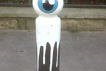 Il y a quelque temps, j'avais découvert sur un blog de Parisien(ne) photographe que je suis régulièrement (sorry, je ne me souviens plus de son nom), une oeuvre d'art greffée à un poteau anti stationnement.